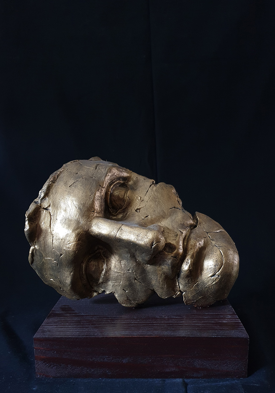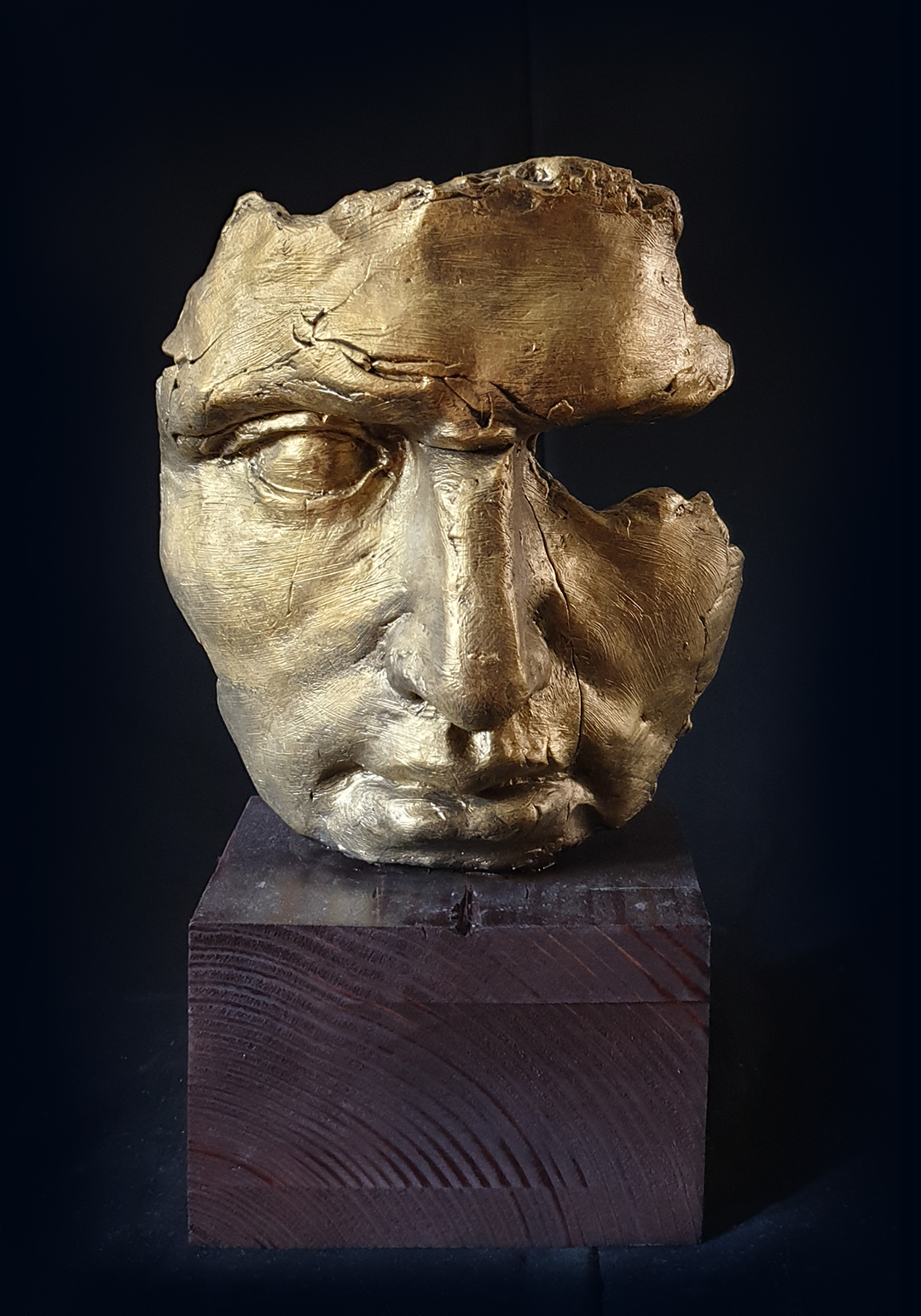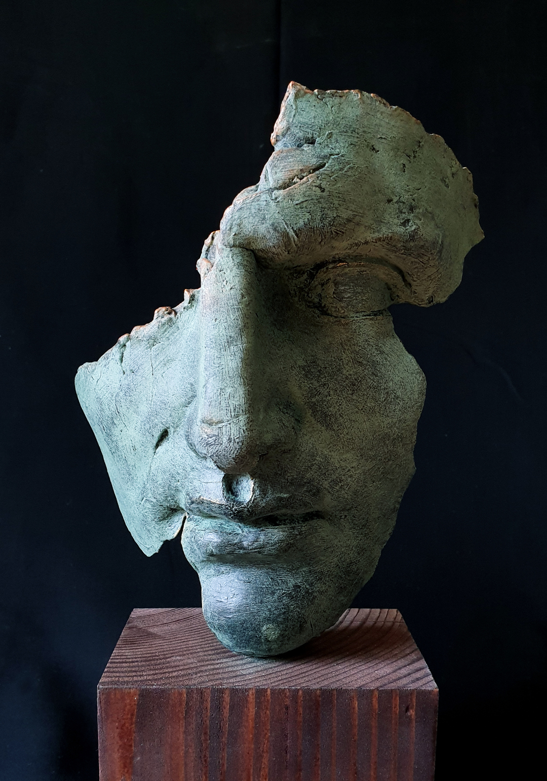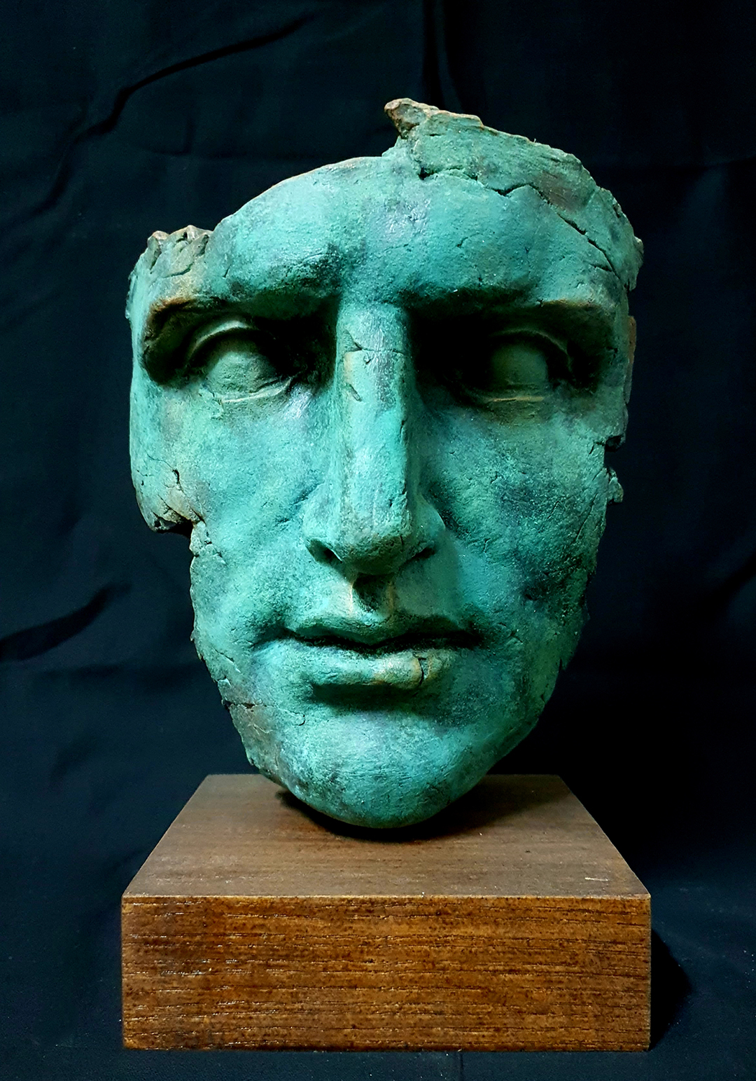 Serija od 16 radova, kojima nam se predstavlja Marko Grgat,  temelji se na studijama grčkog kiparstva. Jasna je njegova zaintrigiranost antičkom umjetnošću i radovima starih majstora. Radovi su napravljeni u punoj plastici, ali se upravo zbog „otkinutih“ dijelova lica, tj. izostavljajući puni volumen, približio visokom reljefu. Fragmenti lica otkrivaju nam robusnost lika kojim umjetnik repetativno manipulira. Ne ponavljajući se, u doslovnom smislu postavlja naglaske na razne segmente; fragmente lica, fragmente koji nedostaju, položaj lica, oči, boje… Premda su radovi napravljeni u terakoti, bojama vješto imitira patinu pooštravajući dojam drevnoga. Korištenje boja u skulpturi nije bilo strano ni u vrijeme Egipta, antičke Grčke, gotike ili primjerice baroka. Osim bronce i kamena poigrava se zlatnim i plavim nijansama. Iako se obje boje povezuju s kraljevstvima i božanstvima, plava boja simbolizira besmrtnost, vječnost i istinu, dok je zlatna znak moći i bogatstva. Uparivanjem vlastite interpretacije antičkih djela s komadima drva koji imaju ulogu postamenata i bojom komplementiraju svom paru, postigao je suvremenu cjelinu. Premda oduzimanjem dijelova lica Grgat ukazuje na prolaznost, raspadanje i samu smrt, plavom bojom daje dozu mističnosti i duhovnosti čime nas navodi na promišljanje o vječnosti. Više>>