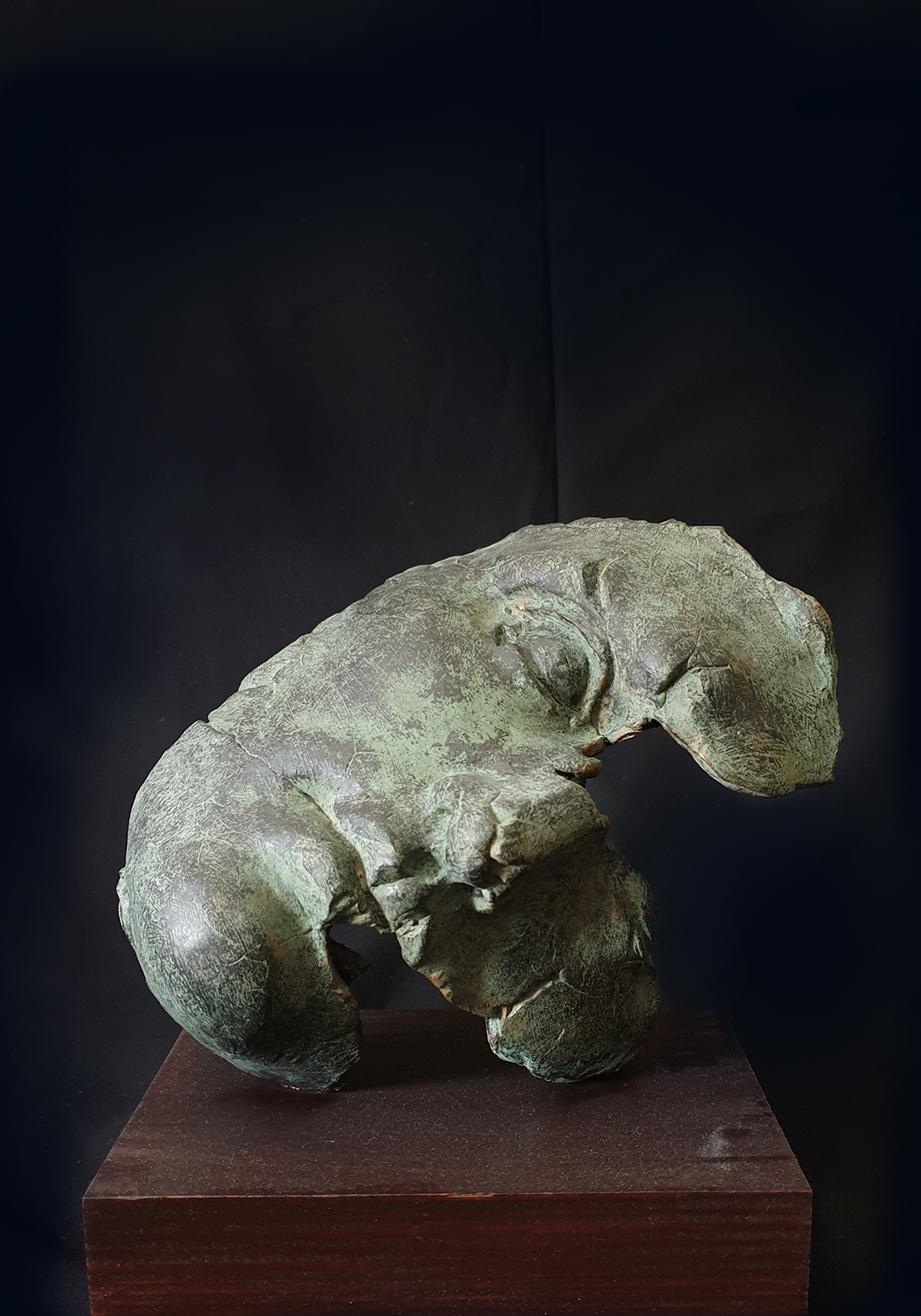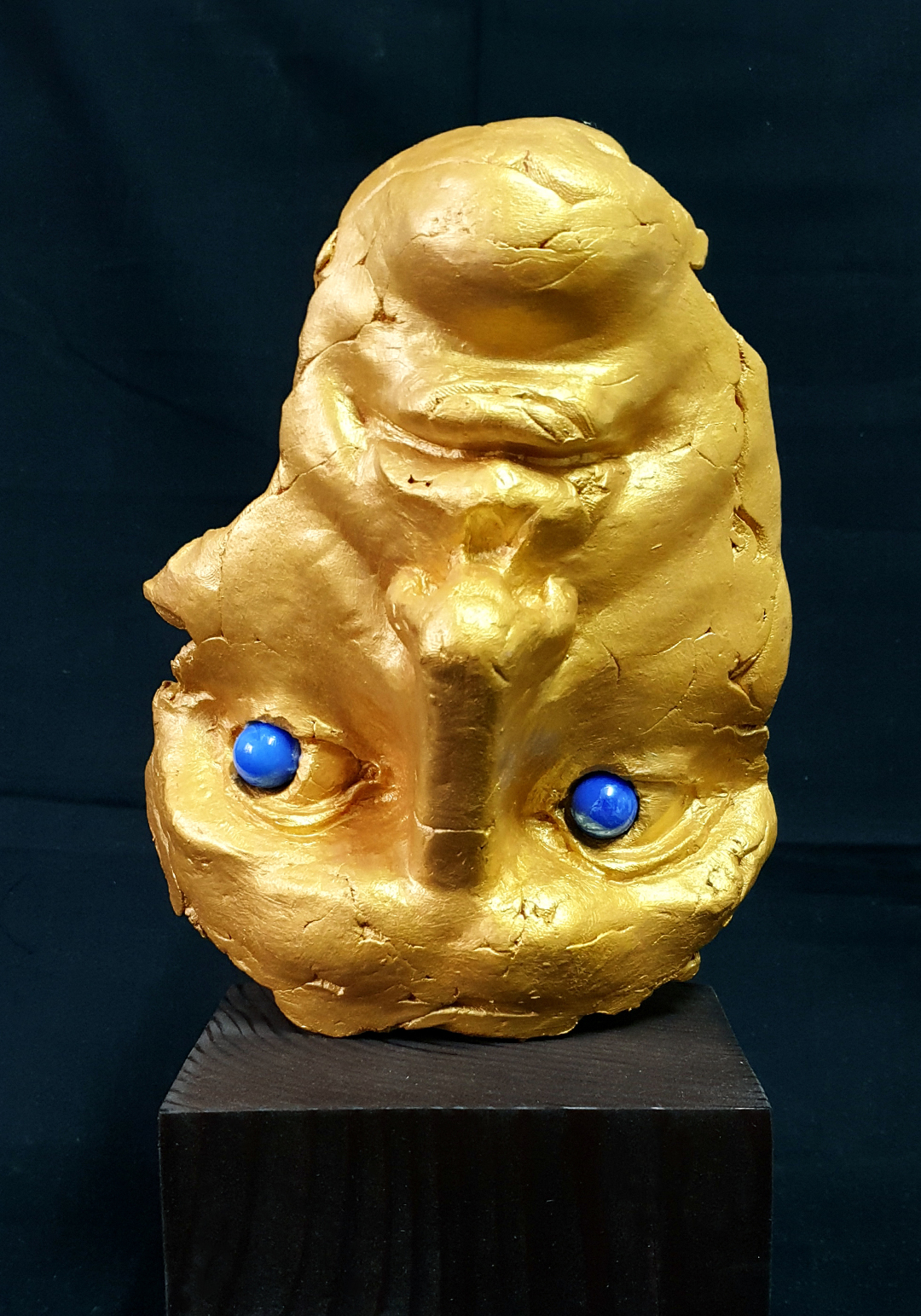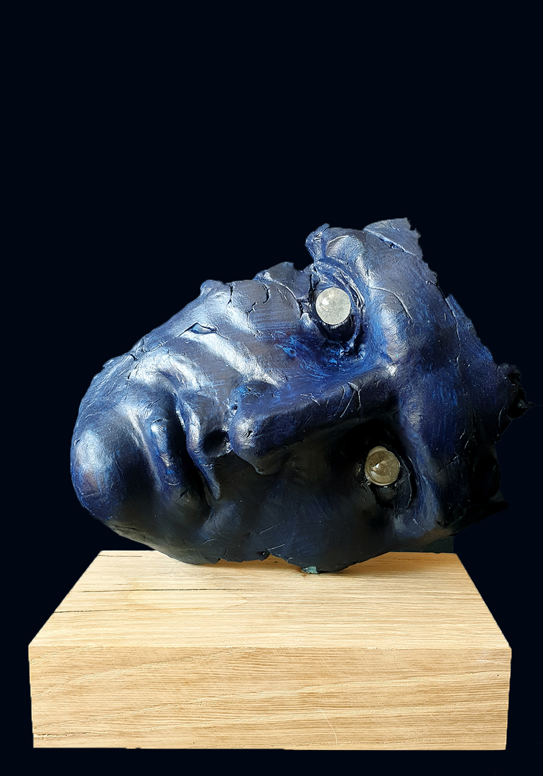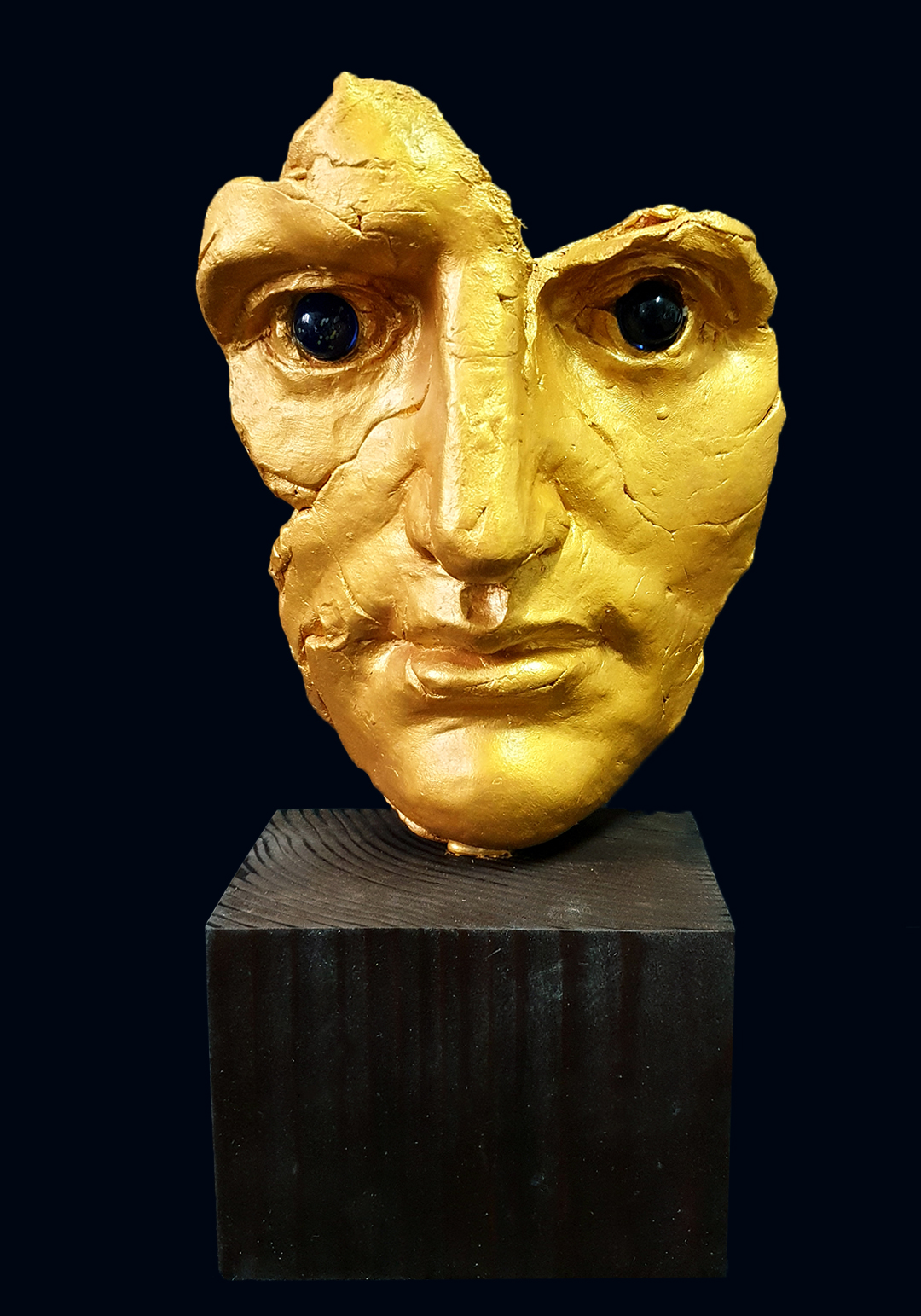 Serija od 16 radova, kojima nam se predstavlja Marko Grgat,  temelji se na studijama grčkog kiparstva. Jasna je njegova zaintrigiranost antičkom umjetnošću i radovima starih majstora. Radovi su napravljeni u punoj plastici, ali se upravo zbog „otkinutih“ dijelova lica, tj. izostavljajući puni volumen, približio visokom reljefu. Fragmenti lica otkrivaju nam robusnost lika kojim umjetnik repetativno manipulira. Ne ponavljajući se, u doslovnom smislu postavlja naglaske na razne segmente; fragmente lica, fragmente koji nedostaju, položaj lica, oči, boje… Premda su radovi napravljeni u terakoti, bojama vješto imitira patinu pooštravajući dojam drevnoga. Korištenje boja u skulpturi nije bilo strano ni u vrijeme Egipta, antičke Grčke, gotike ili primjerice baroka. Osim bronce i kamena poigrava se zlatnim i plavim nijansama. Iako se obje boje povezuju s kraljevstvima i božanstvima, plava boja simbolizira besmrtnost, vječnost i istinu, dok je zlatna znak moći i bogatstva. Uparivanjem vlastite interpretacije antičkih djela s komadima drva koji imaju ulogu postamenata i bojom komplementiraju svom paru, postigao je suvremenu cjelinu. Premda oduzimanjem dijelova lica Grgat ukazuje na prolaznost, raspadanje i samu smrt, plavom bojom daje dozu mističnosti i duhovnosti čime nas navodi na promišljanje o vječnosti. Više>>