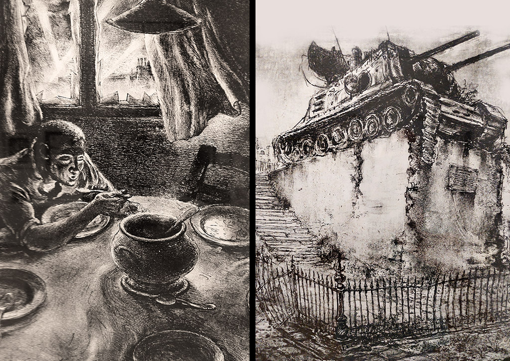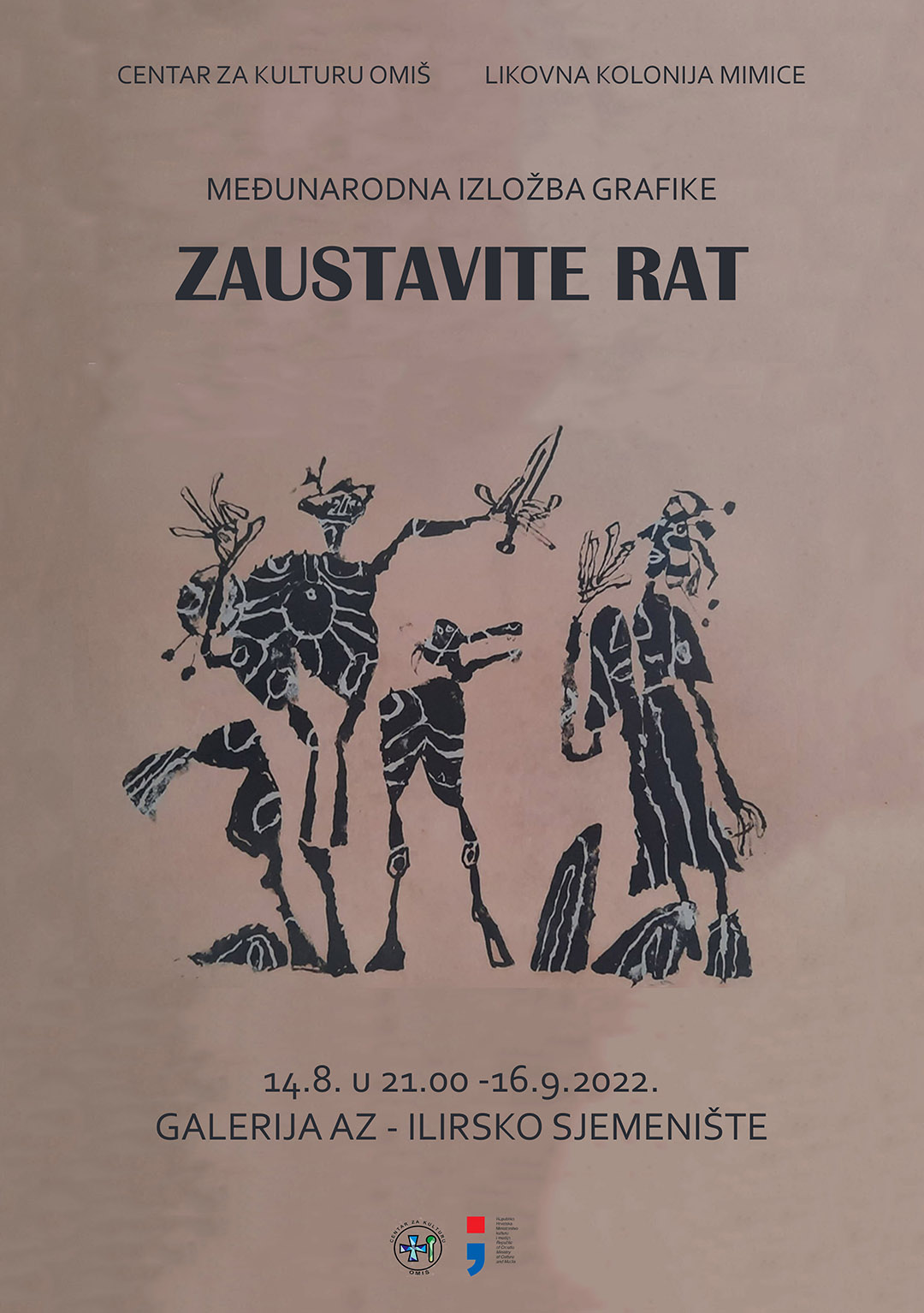 S odabirom umjetnika i njihovih radova htjeli smo prikazati različite načine upozoravanje na užase ratnih sukoba i promoviranja mira i praštanja. Radovi koje izlažemo nalaze se u fundusu Galerije Mimice i u privatnoj zbirci Mladenke Mimice.